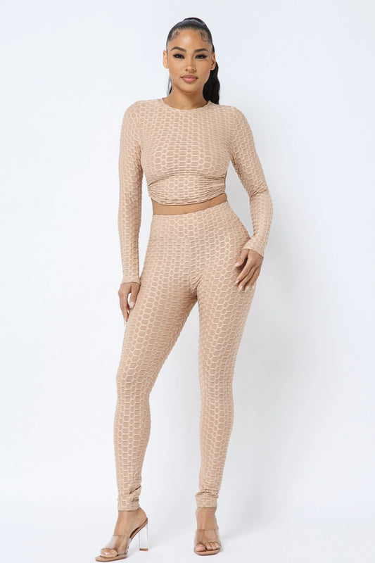 Sexy Honeycomb Open Back Tie Top and Leggings Set