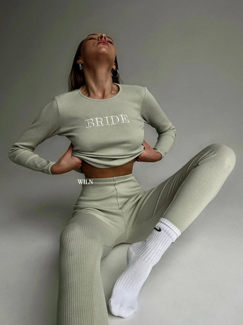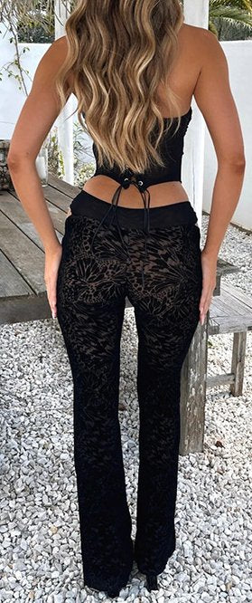 Sexy Flocking Strap Waist Tied Top and Pants Set