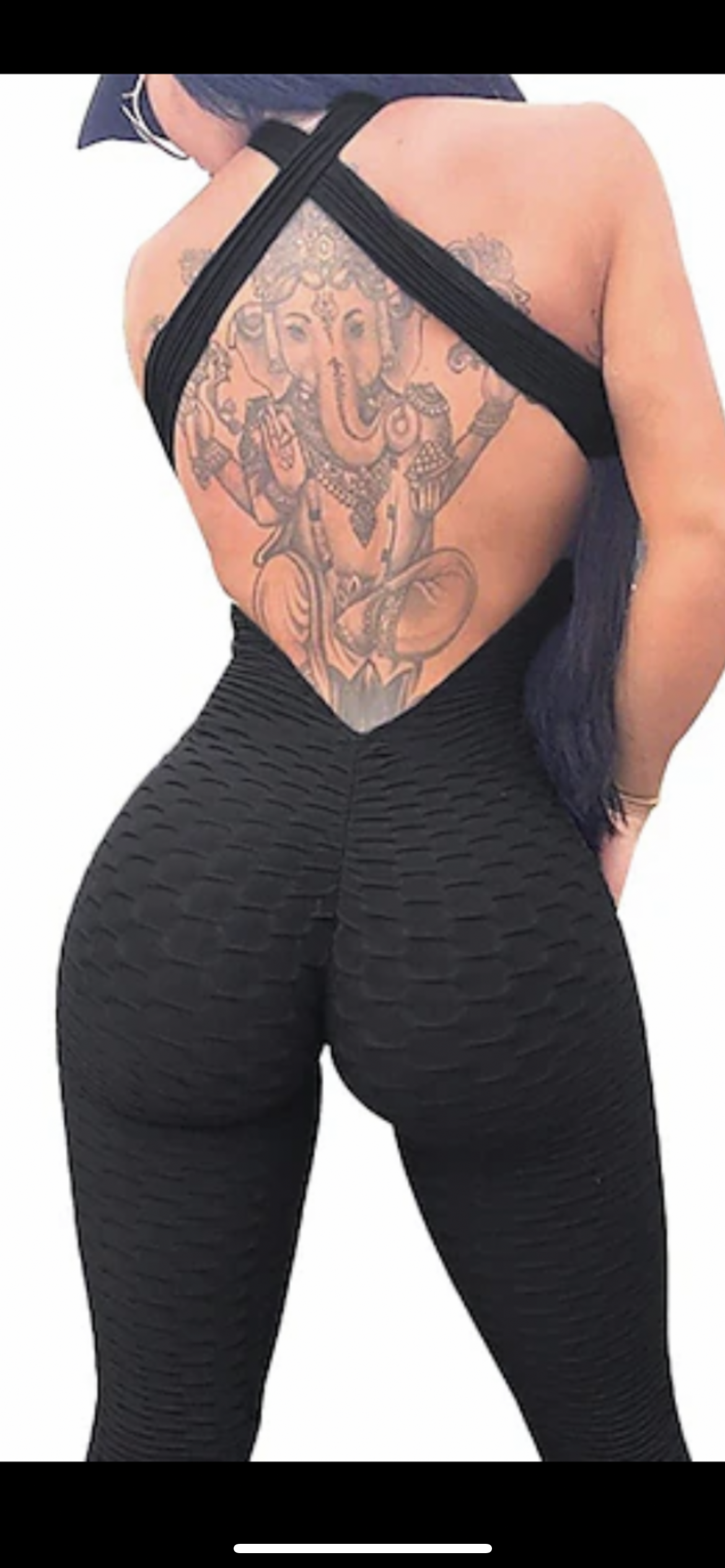 Sexy one piece jumpsuit is made of a stretch fabric that makes you feel comfortable while working out, during yoga and Pilates. Available in Black only.